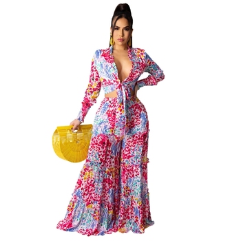 Set Casual da donna in Chiffon irregolare stampato a maniche lunghe a gamba larga da donna popolare europeo e americano